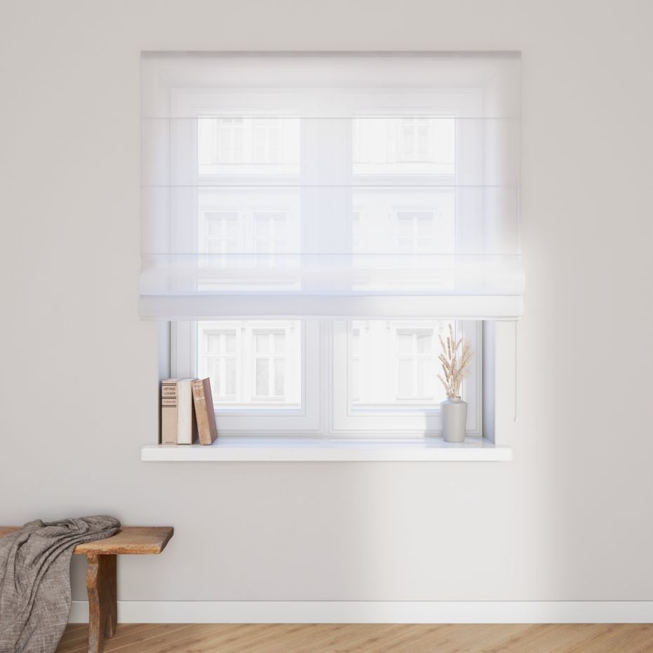 Półprzezroczyste firany rolety możesz wygodnie podnosić i opuszczać za pomocą takiego samego mechanizmu jak w innych modelach rolet rzymskich. Podczas ich składania na materiale tworzą się eleganckie plisy, co sprawia, że rolety firanowe stają się oryginalną ozdobą wielu aranżacji wnętrz.