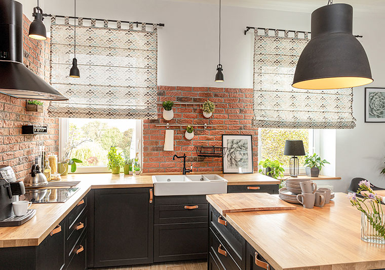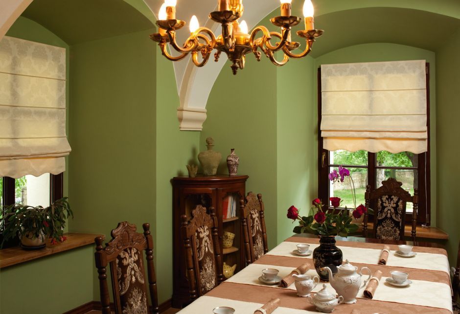 Piękna dekoracja okna, jaką tworzą rolety rzymskie, warto zastosować w kuchni lub jadalni. To praktyczne i funkcjonalne rozwiązanie zajmuje niewiele miejsca, a po podciągnięciu nie brudzi się, np. podczas przygotowywania posiłków.