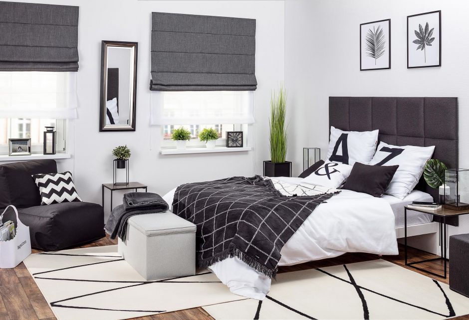 Rolety rzymskie w sypialni również sprawdzą się znakomicie! Powieszone samodzielnie lub w duecie z zasłonami stworzą piękną, romantyczną kompozycję, a te wykonane z tkanin zaciemniających zagwarantują zdrowy i spokojny sen.