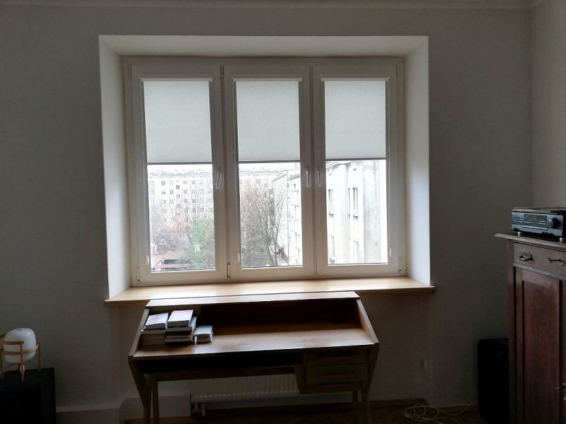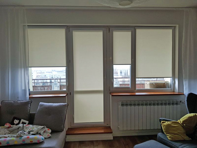 Materiał osłonowy zwijany jest do kasety a kiedy ją rozwijamy, materiał trzyma się przy oknie dzięki maskownicom (prowadnicom) bocznym.