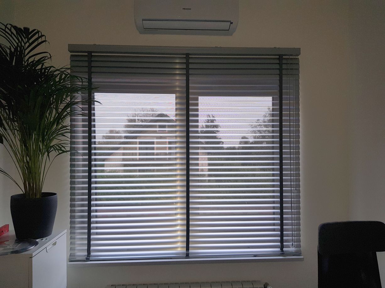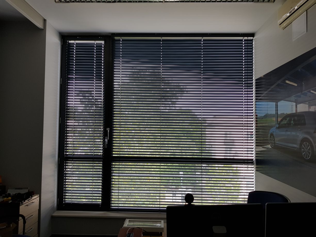 Żaluzje aluminiowe o szerokości 50mm stały się bardzo popularne na rynku biurowym, w witrynach sklepowych i na tarasach, z uwagi na to, że doskonale prezentują się na dużych powierzchniach.