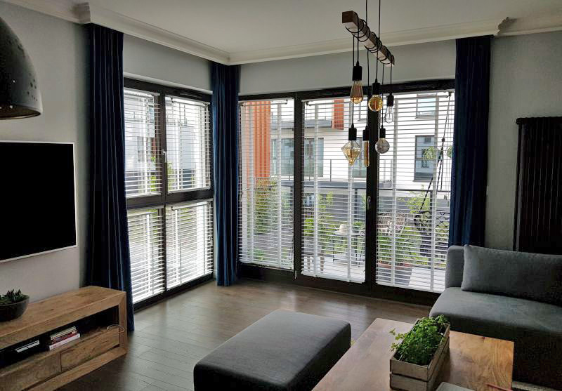Za pomocą pokrętła lub sznura regulujemy ilość wpadającego do mieszkania światła. Przy szerokości lamel 50 mm występują 2 systemy żaluzji drewnianej: Classic z drewnianą osłoną rynny górnej w kolorze zbliżonym do koloru lameli i Retro ze stylizowanym mechanizmem w kolorze patynowanego brązu.