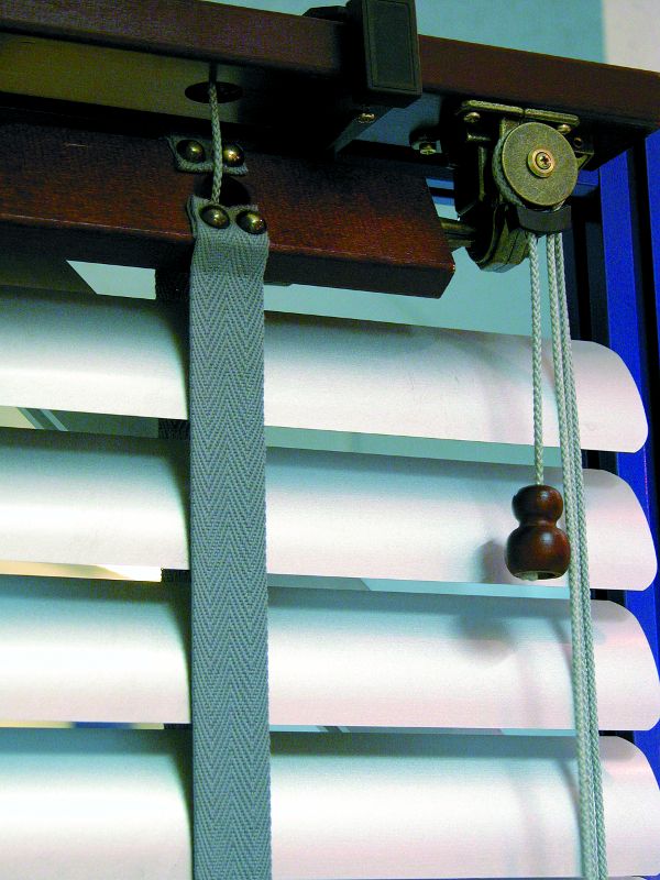 Sterowanie żaluzją odbywa się za pomocą trzech sznurków: dwa służą do obracania lameli a trzeci do jej podnoszenia. Za pomocą pokrętła lub sznurka regulujemy ilość wpadającego do mieszkania światła. Przy szerokości lamel 50 mm występują 2 systemy żaluzji drewnianej: Classic z drewnianą osłoną rynny górnej w kolorze zbliżonym do koloru lameli i Retro ze stylizowanym mechanizmem w kolorze patynowanego brązu.